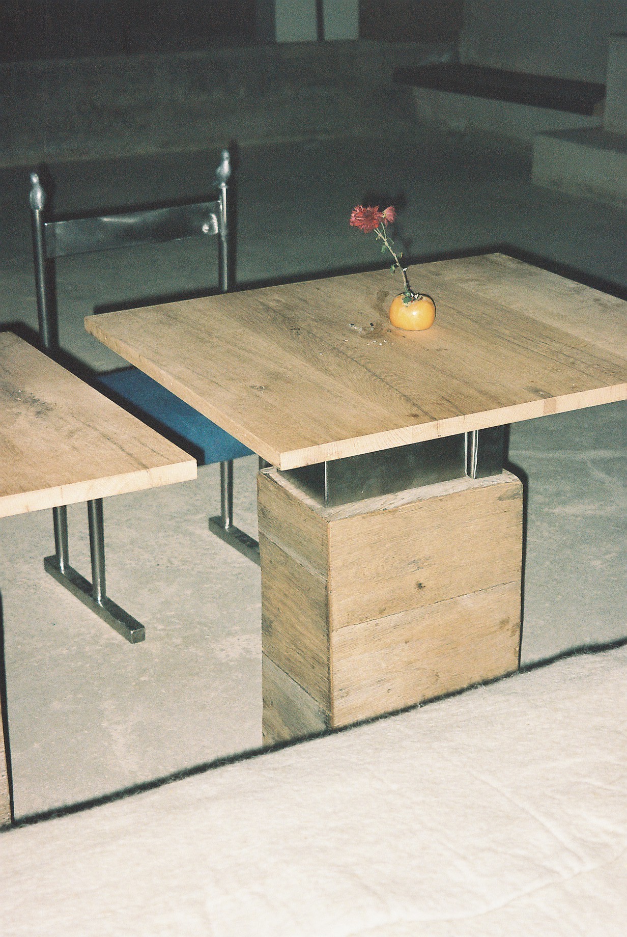 Stainless steel, Reclaimed oak wood